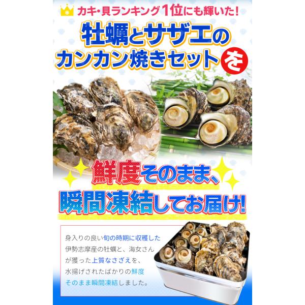 牡蠣 さざえ カンカン焼き セット (冷凍) 送料無料 牡蠣20個とサザエ10個 ミニ缶入り (牡蠣ナイフ・片手用軍手付き) 殻付き 牡蠣 1斗缶 三重県 鳥羽産