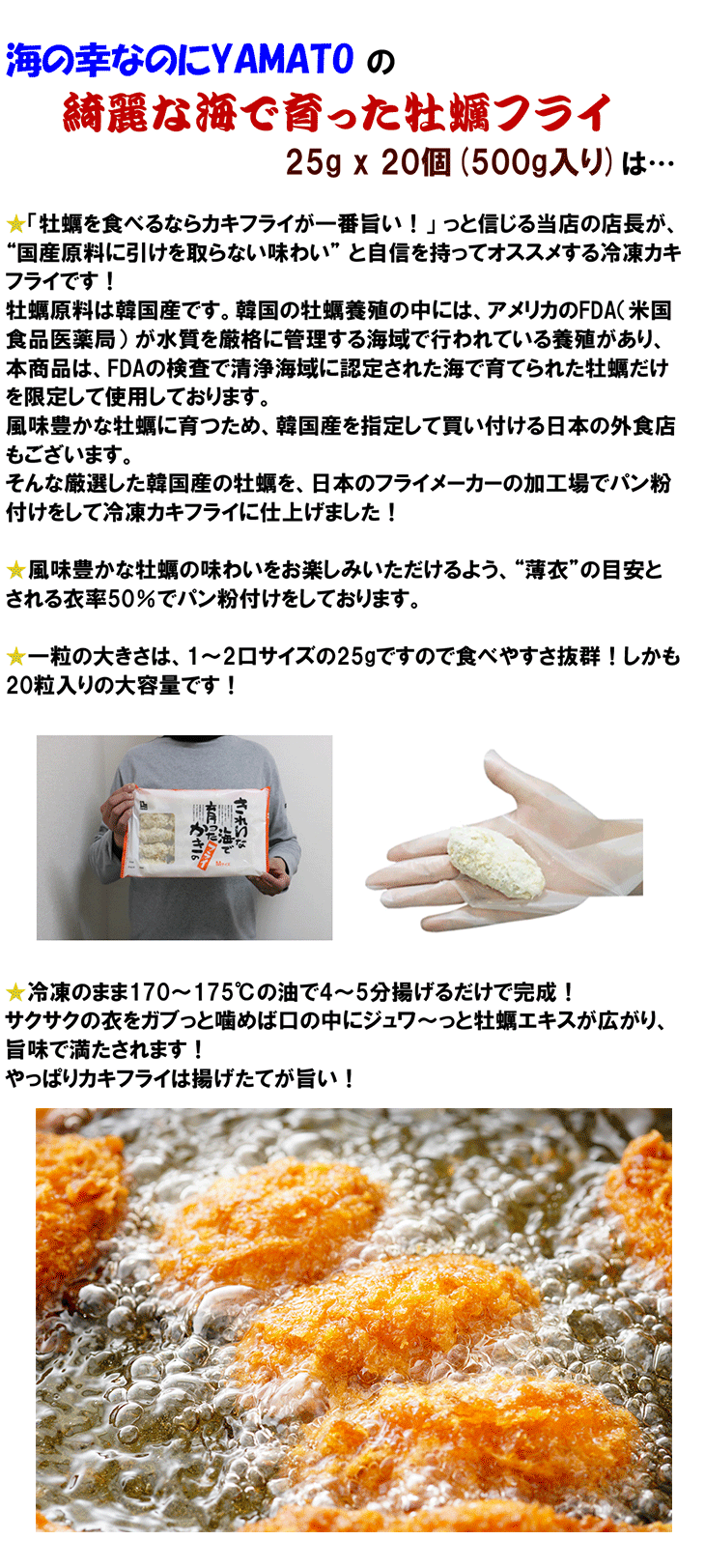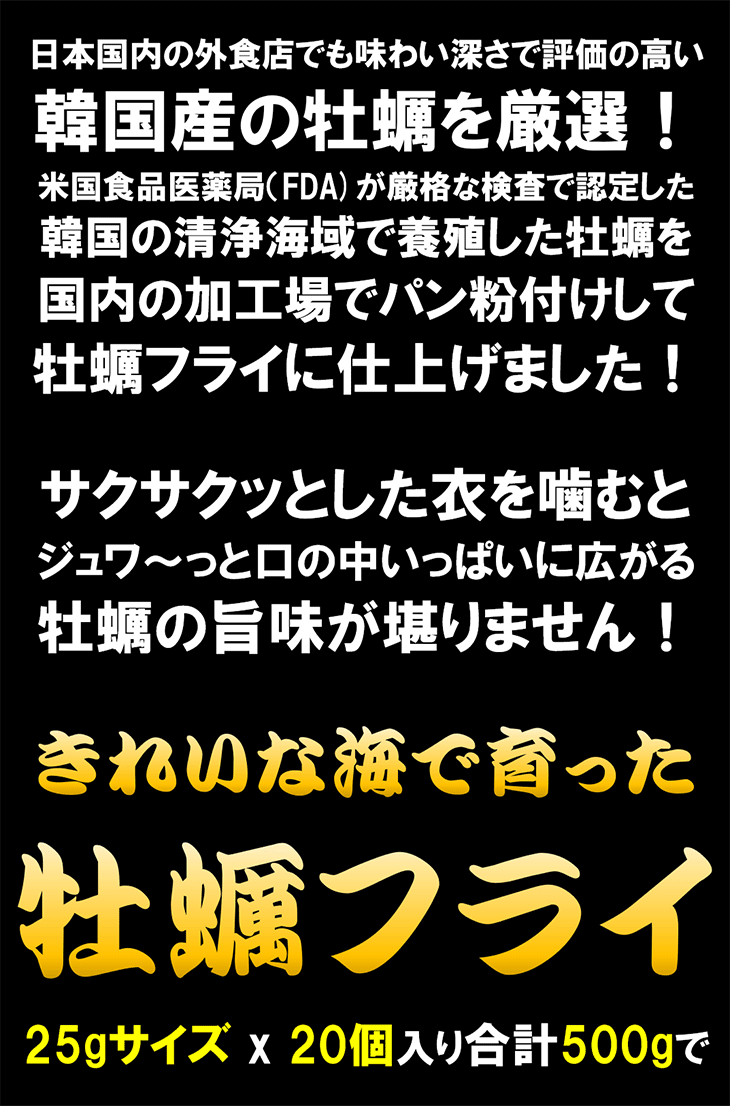 きれいな海で育った牡蠣フライ 25gサイズ x 20個入り 計500g かきふらい カキフライ 貝 かい 揚げ物 惣菜 冷凍食品