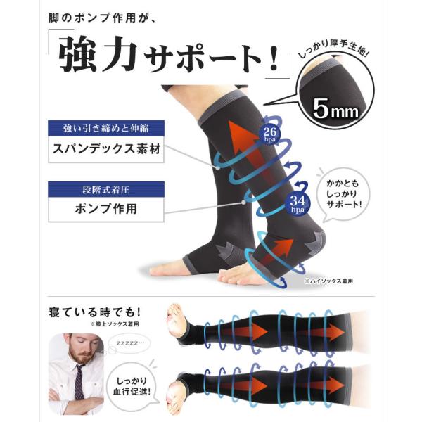 着圧ソックス メンズ 強圧 両足 締 オープントゥ ひざ下 弾性ストッキング むくみ 消臭 黒 ブラック 男性用 つま先なし 靴下 立ち仕事 飛行機 旅行 出張