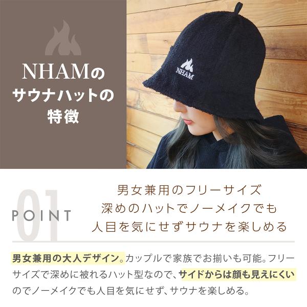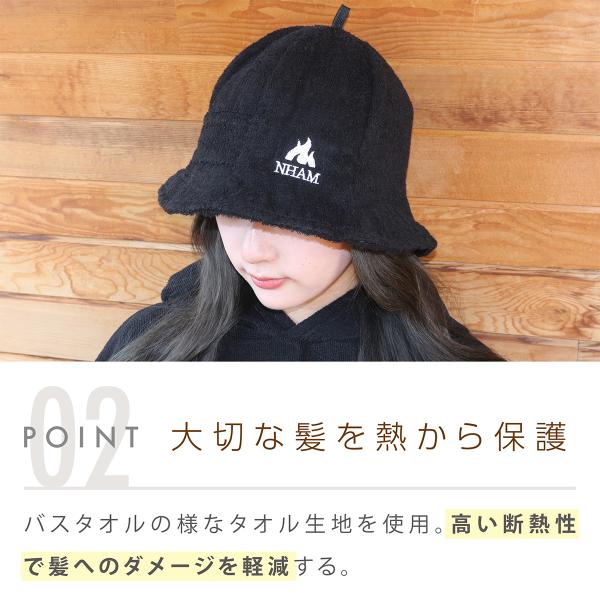 [NHAM] サウナハット メンズ レディース 男女兼用 タオル地 大きめ 深め コットン100% 吸水性 フリーサイズ 収納ポーチ付