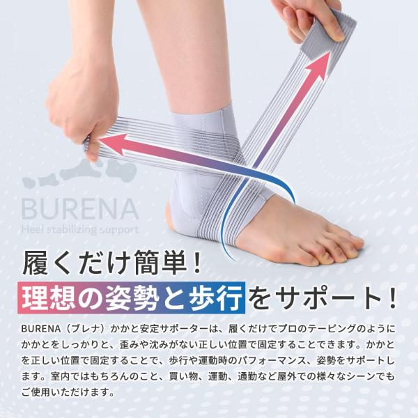 ブレナ BURENA かかとサポーター 踵サポーター 足首サポーター 足底腱膜炎 足底筋膜炎 テーピング 足首 足裏 固定用 安定 距骨 踵骨 足裏アーチ