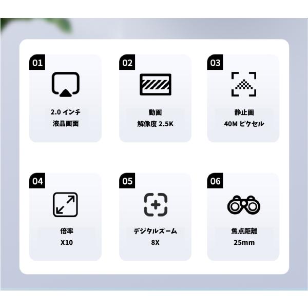 【公式】 双眼鏡 録画 デジタルカメラ 録画機能 モニター 解像度2.5K 倍率10X デジタルズーム8X 充電式 旅行 運動会 動物観察 バードウォッチング