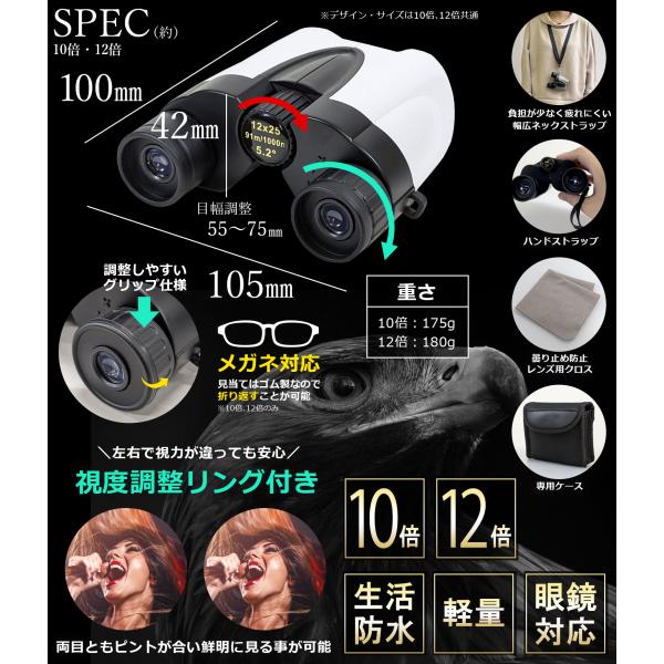 1秒で特等席 双眼鏡 12倍 眼鏡対応 生活防水 軽量 コンサート ライブ用 スポーツ観戦 ドーム 望遠鏡 オペラグラス コンパクト シンプル 無地 豪華付属品