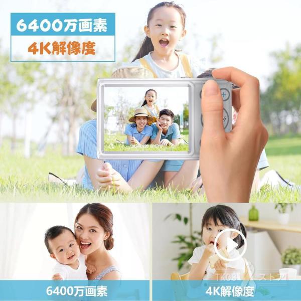 【正規品】 デジタルカメラ デジカメ 6400万画素 4K 動画撮影 2.8インチ 18倍ズーム 高画質 AF機能 自撮り スマホ転送 手振れ補正 美顔 フィルター 初心者 学生