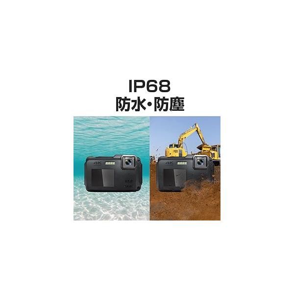 【IP68準拠・CALS対応】FaCLOSS 4K防水タフネスデジカメ FC-64WDCB|有効1300万画素|耐衝撃|Wi-Fi|Type-C充電|ブラック