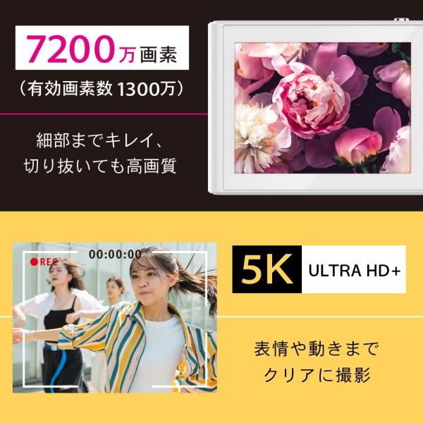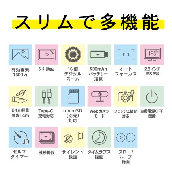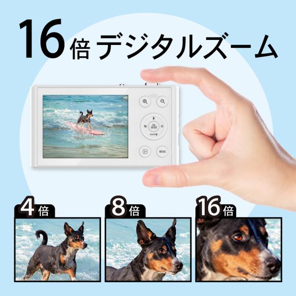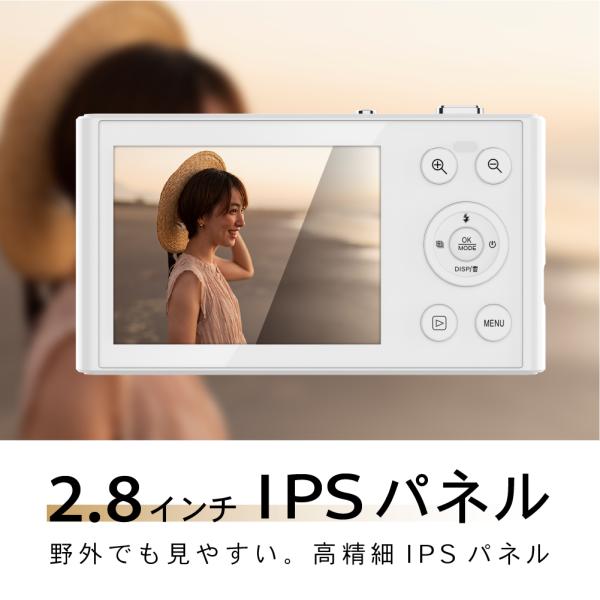 スリムデジタルカメラ 1300万画素 5K動画対応 16倍ズーム 2.8インチIPS 薄型約1cm 軽量64g Type-C充電 バッテリー内蔵 FaCLOSS シルバー&ホワイト