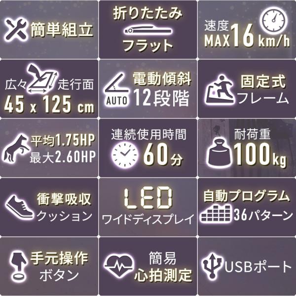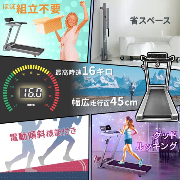 ルームランナー ランニングマシーン 家庭用 静か 電動 16km 折りたたみ コンパクト 電動傾斜12段階 簡易組立 DK-7211EA