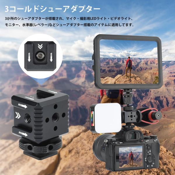 UTEBIT ホットシューアダプター 3コールドシューマウント 1/4 ストロボ用シューマウント アルミ製 撮影補助ツール アルカスイス位置決め