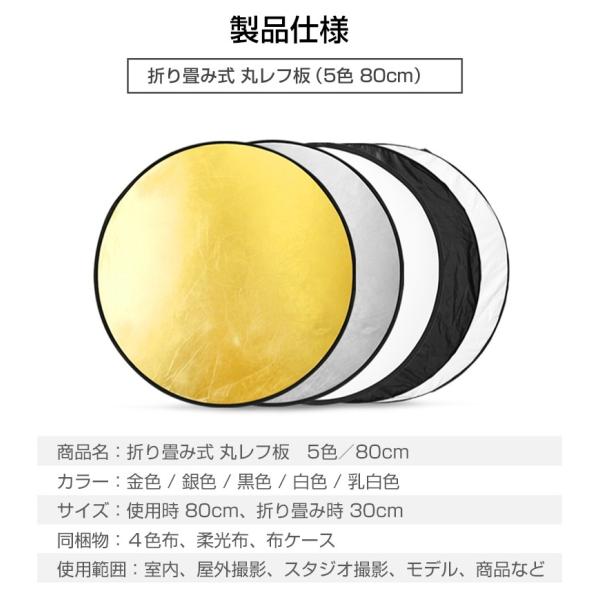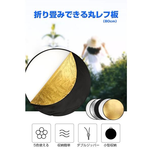 5in1 丸レフ板 <80cm> 商品撮影や人物撮影に コンパクトに折りたたみ可能 白 銀 金 黒 乳白 反射板 撮影用 影を薄くする 被写体 リフレクター |L