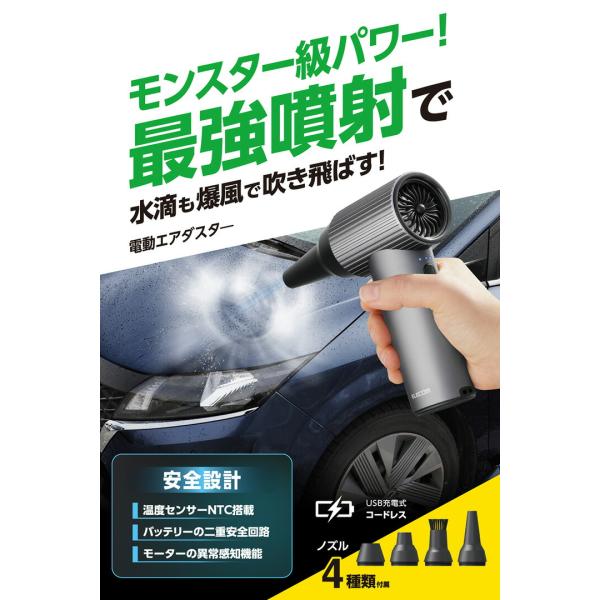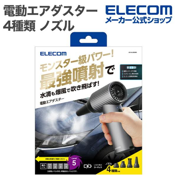 エレコム 電動エアダスター 4種類 ノズル モンスター 3段階調整 ブラック AD-ALB05BK