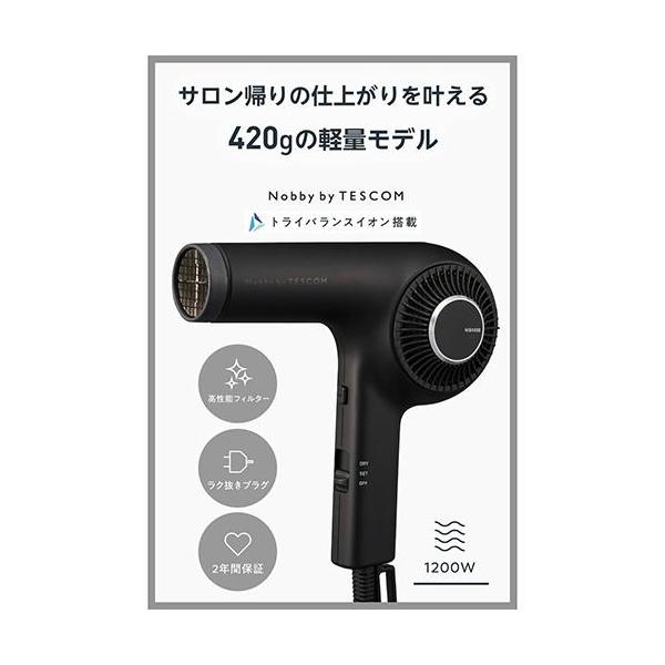 テスコム(TESCOM) NIB400B-K ブラック ヘアドライヤー 軽量 日本製 マイナスイオン トライバランスイオン サロン品質 うるおい・まとまり・ツヤ