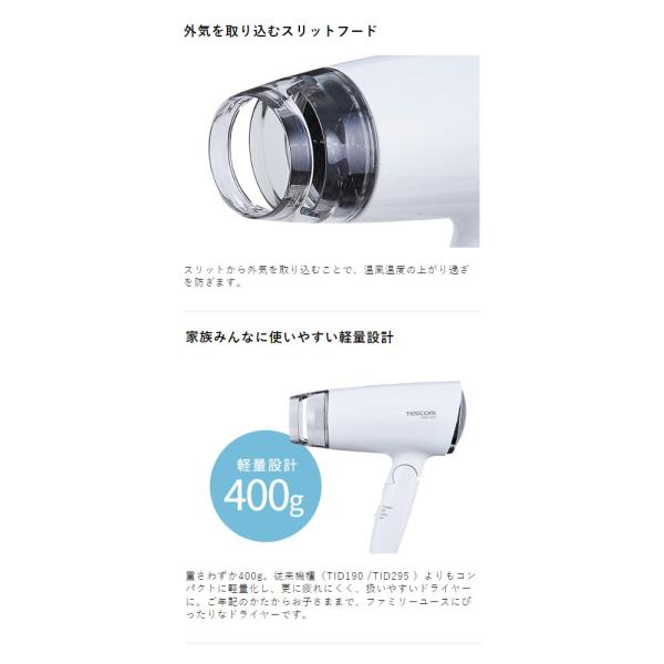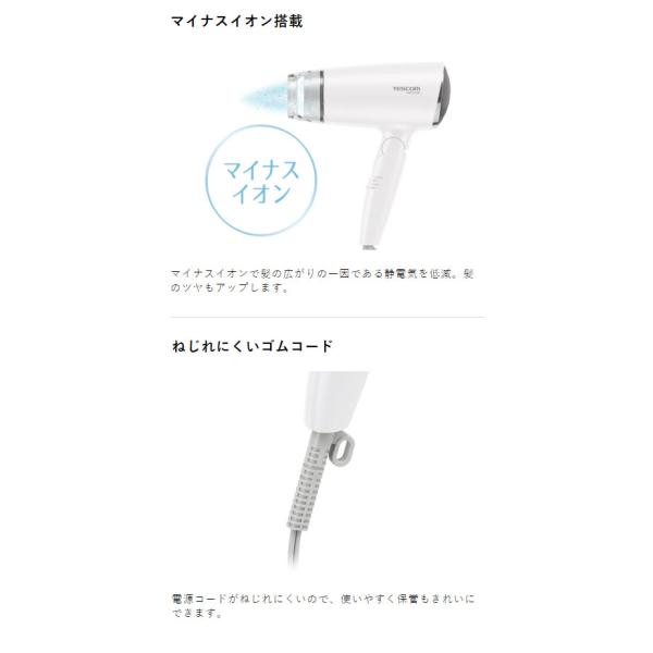 テスコム ドライヤー 軽量 マイナスイオン ヘアードライヤー 1200W テスコム TD200B (ホワイト、ネイビー)