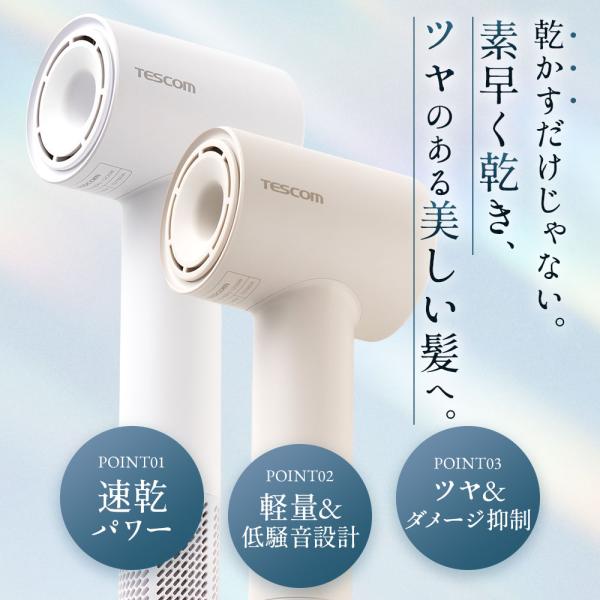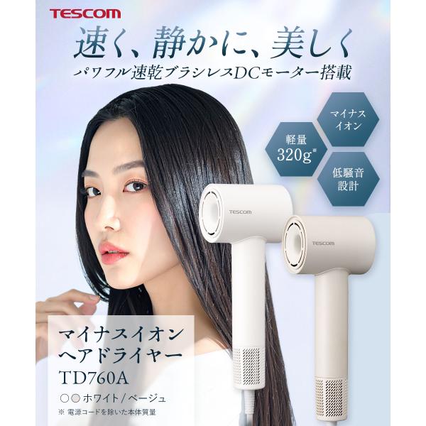 ドライヤー 速乾 大風量 静音 テスコム ヘアドライヤー 1200w 冷熱風 軽量 高速 マイナスイオン 口コミ メンズ BLDC TD760A/E 公式店 日本メーカー