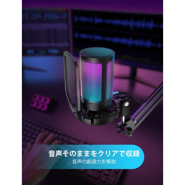 FIFINE A6V コンデンサーマイク RGB カーディオイド指向性 USB-C→USB-Aケーブル付き ワンタッチミュート PC/PS4/PS5に対応 AmpliRocket 国内正規品
