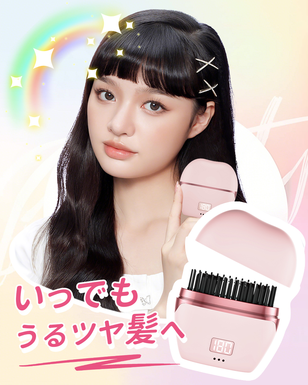 ヒートブラシ 2026年モデルアップ|500円OFF中! ヘアアイロン ブラシ くし コードレス ストレートアイロン 携帯用 デジタル表記 3段階温度調整 MAX180℃ 超軽量