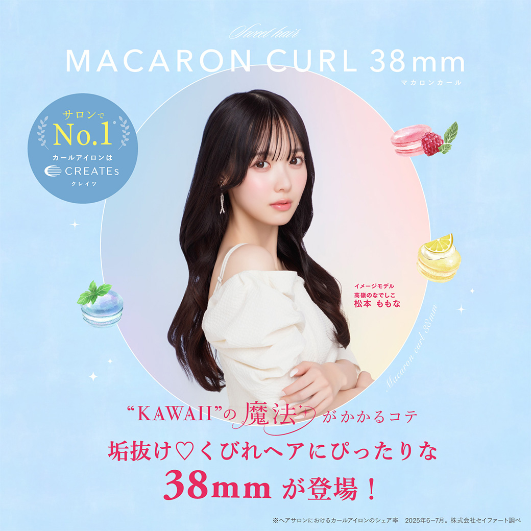 クレイツ マカロンカールアイロン 32mm 38mm フランボワーズ シトロン ミント CCM-G32P CCM-G32Y CCM-G32B うるツヤ きゅるん 松本ももな 高嶺のなでしこ