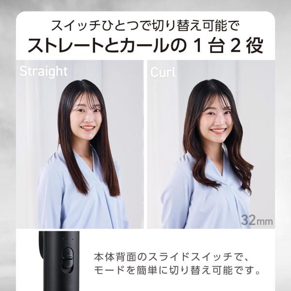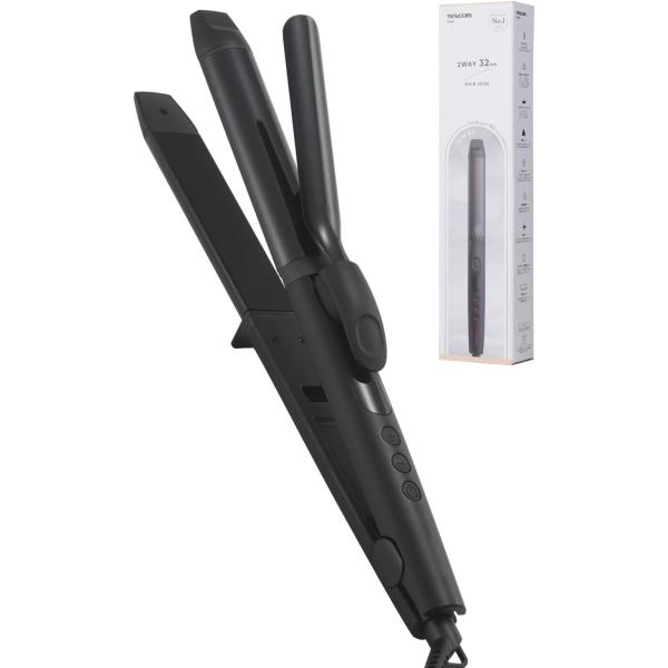 TESCOM ヘアアイロン コテ 32mm ストレート カール 2way 温度調整/ロック/メモリー 海外対応 自動OFF 耐熱ポーチ付 1.7m ブラック TW363A-K