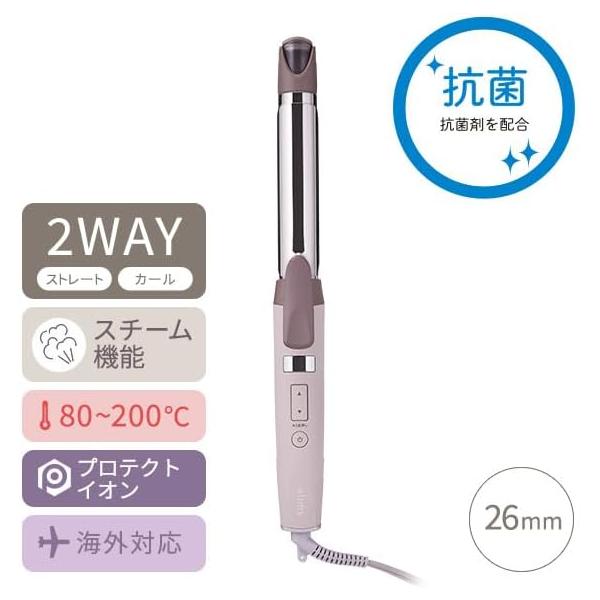 テスコム ヘアアイロン elims est コテ 26mm ストレート カール 2way マイナスイオン 海外対応 スチーム 温度調整 開閉ロック コットンベージュ TW752A-C