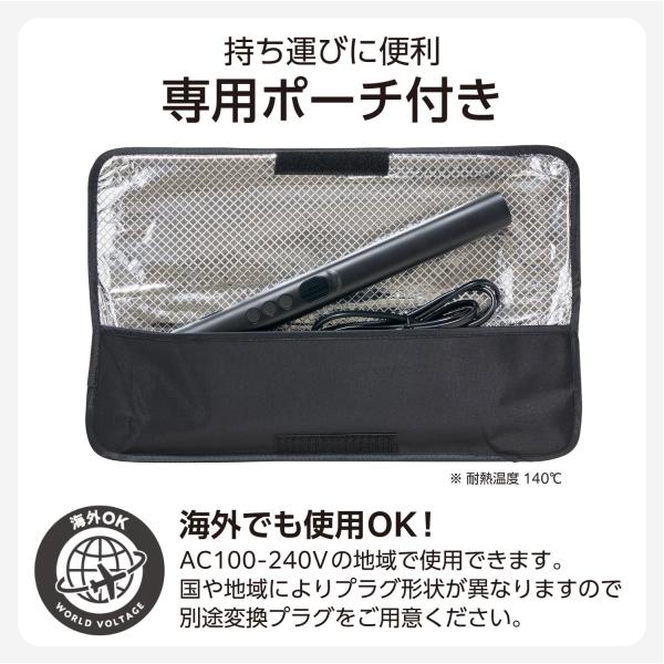 テスコム ストレートアイロン マイナスイオン ナノセラミックコーティング 25mm 120~200℃ 海外対応 自動OFF 開閉ロック 専用ポーチ付 1.7m ブラック TS360A-K