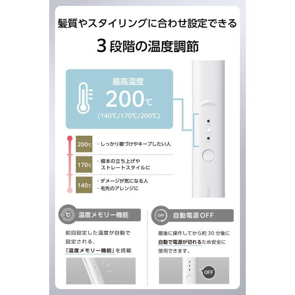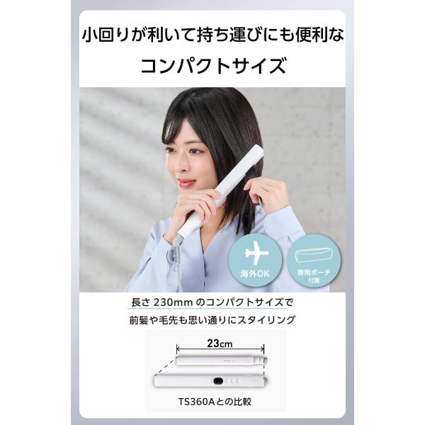 テスコム ストレートアイロン ヘアアイロン コンパクト ナノセラミックコーティング 3段階 温度調整/メモリー 海外対応 専用ポーチ付 1.7m ホワイト TS367A-W
