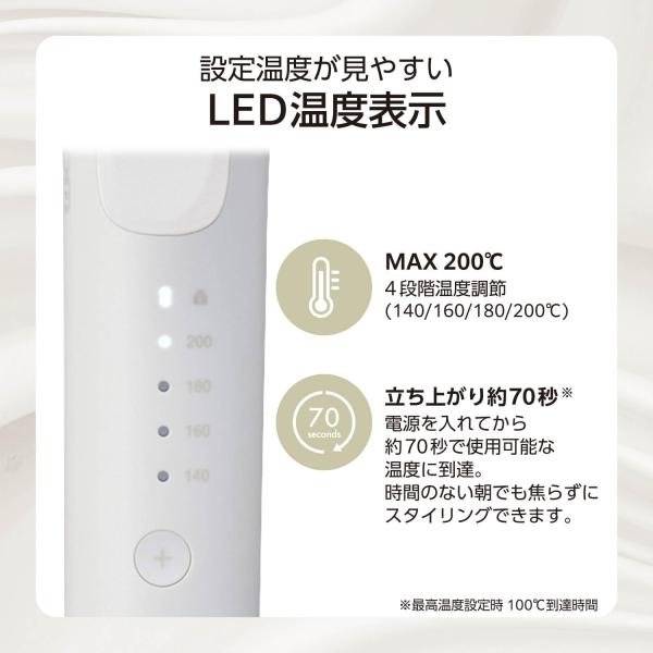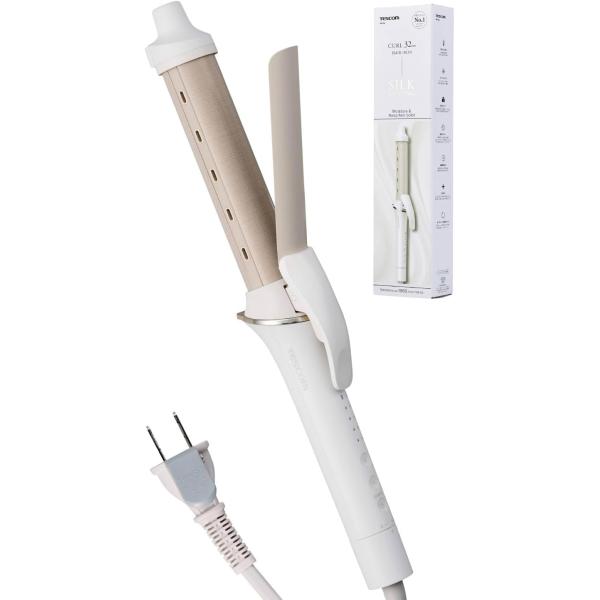 テスコム ヘアアイロン コテ 32mm マイナスイオン シルクコーティング 140-200℃ 海外対応 自動OFF ラク抜きプラグ コード長1.7m ホワイト TM763A-W