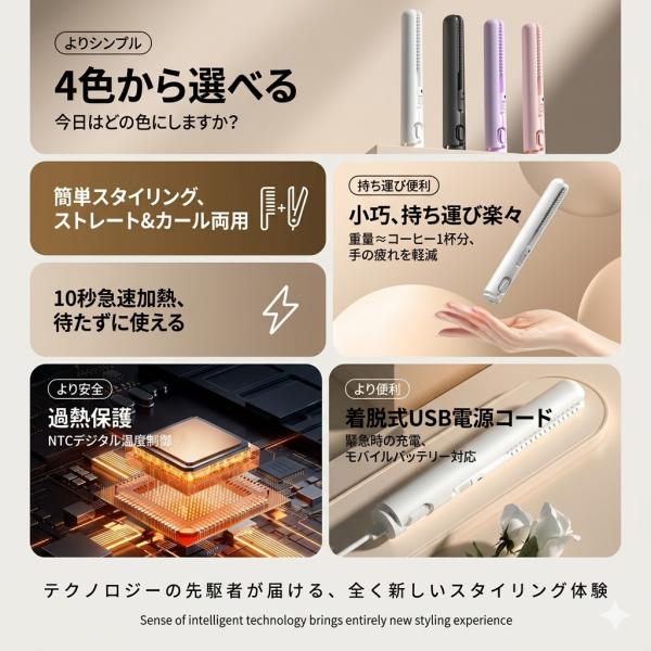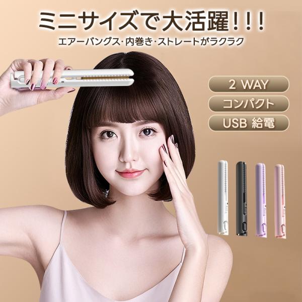 \クーポンで 1560 円!/ヘアアイロン ヘアーアイロン ストレート カール ミニ コンパクト 充電式 携帯用 ミニヘアアイロン 10 秒速熱 軽量 前髪 旅行 2way USB