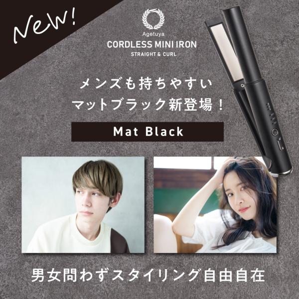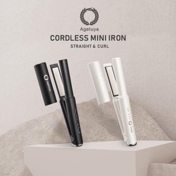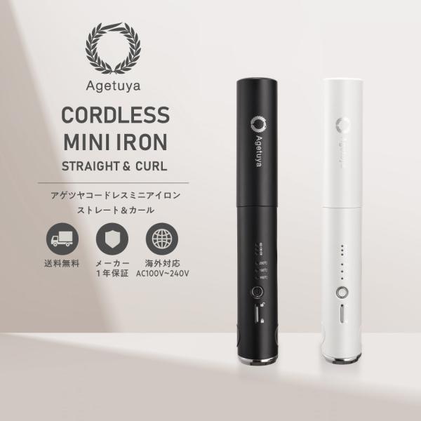 アゲツヤ コードレス 2way ミニヘアアイロン ホワイト・ブラック 持ち運び 旅行 携帯耐熱ポーチ 海外対応 ストレート カール 充電式