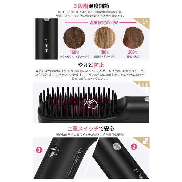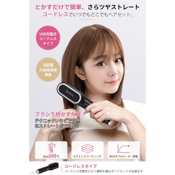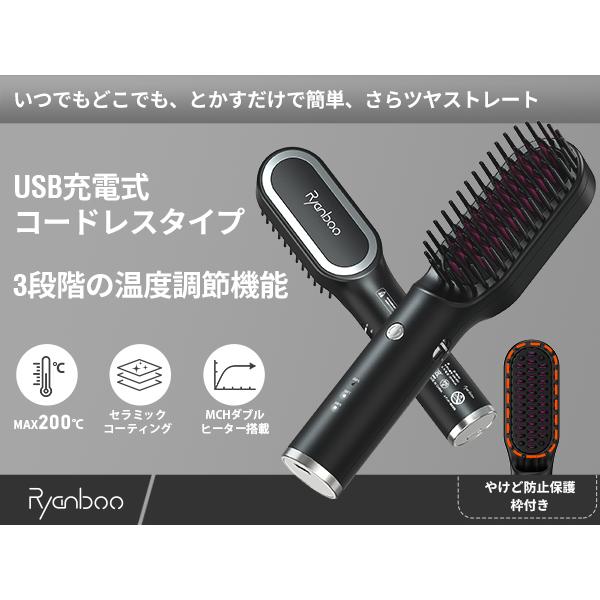Ryanboo ヒートブラシ ヘアアイロン ブラシヘアアイロン コードレスヘアアイロン ストレートアイロン 3段階温度調整 日本語取扱説明書