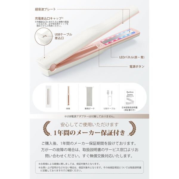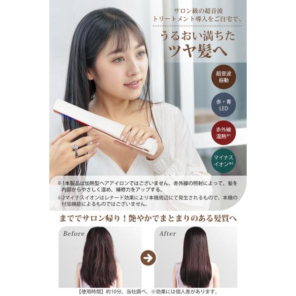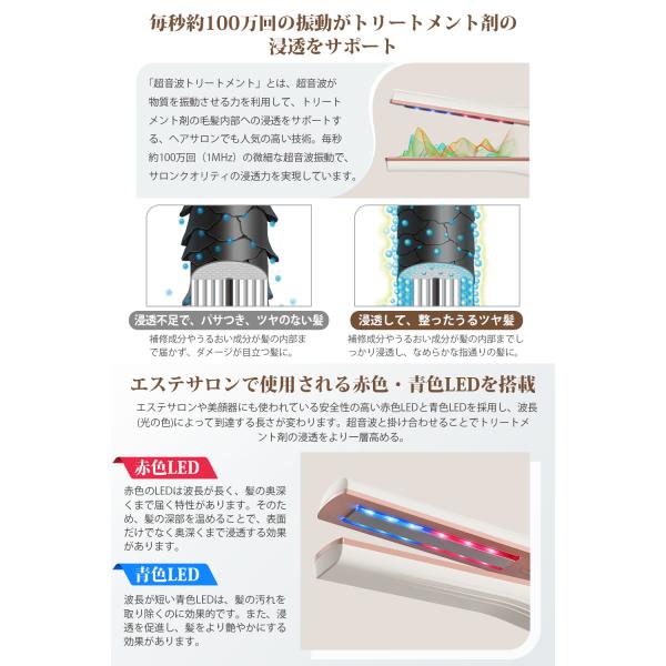 【期間限定10倍ポイント】超音波トリートメントアイロン ツヤ髪 赤色x青色LED 高浸透率アップ 縮毛矯正 ヘアダメージ補修 コードレス 防水 超音波トリートメント