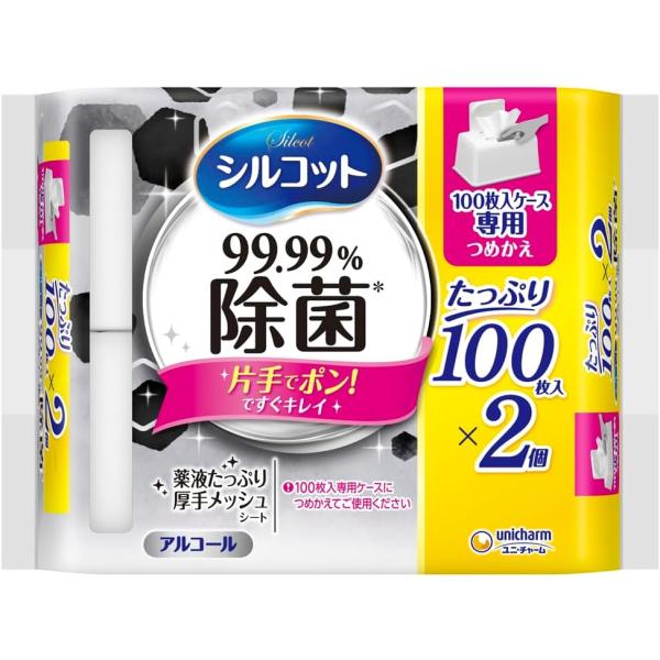 シルコット 99.99%除菌 ウェットティッシュ アルコールタイプ 詰替 200枚(100枚×2個) 大容量