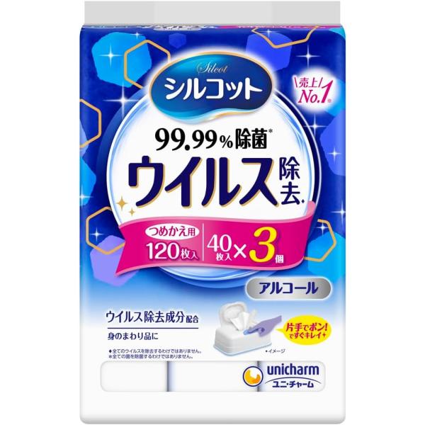 シルコット ウイルス除去 詰替 120枚(40枚×3個) アルコールタオル ウェットティッシュ アルコール99.99%除菌