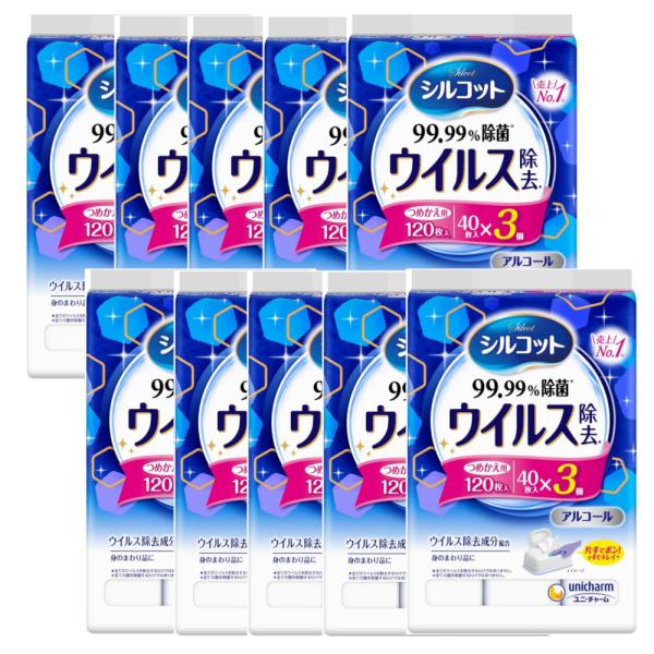 シルコット ウイルス除去 詰替 120枚(40枚×3個) ×10【10個セット】送料無料 アルコールタオル ウェットティッシュ アルコール99.99%除菌