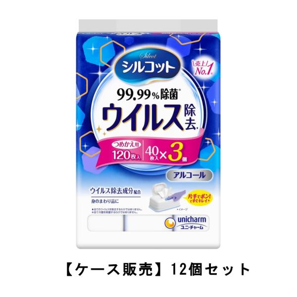 シルコット ウイルス除去 詰替 120枚(40枚×3個) ×12【12個セット】ケース販売 送料無料 アルコールタオル ウェットティッシュ アルコール99.99%除菌