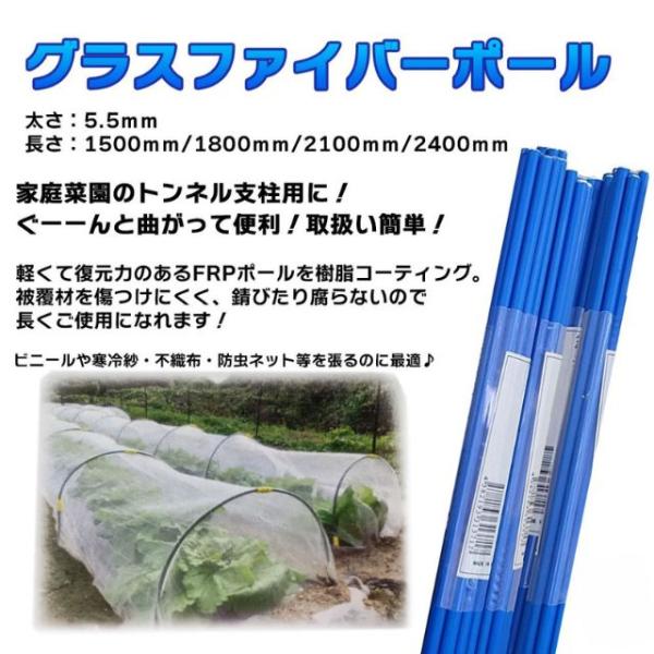 グラスファイバーポール10P 5.5mm×1800mm シンセイ トンネル支柱 FRP 青