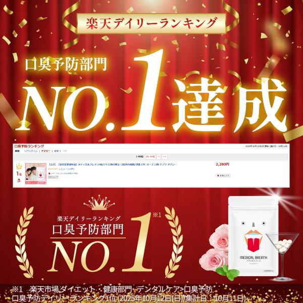 【正規販売店は当店のみ】医薬部外品 メディカルブレス 口臭ケア 口臭除去タブレット サプリ ローズ風味 24粒│口臭の除去 口腔内の殺菌 CPC 口臭対策 舌苔