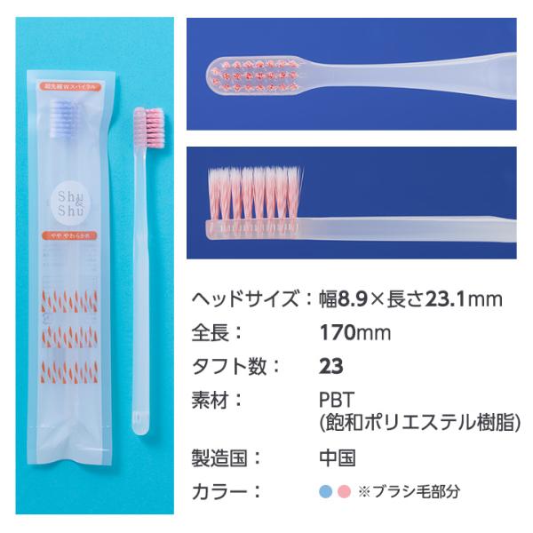 Shu&Shu 歯ブラシ 超先細Wテーパー 25本(5色×5本) 大人用 やややわらかめ 両テーパー毛 歯科専売品 【メール便で送料無料】[M便 1/1]