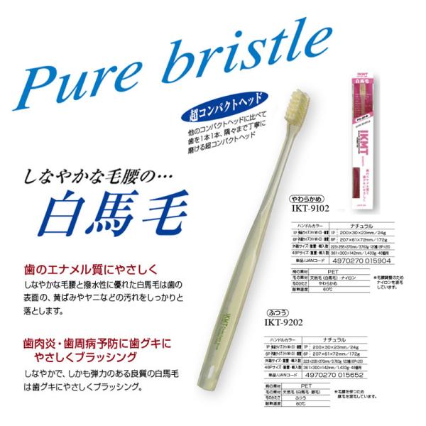 ★ポスト投函 IKT-9202-6 白馬毛歯ブラシ 超コンパクトヘッド ふつう 6本セット 日本製/IKEMOTO/池本刷子/送料無料/代引不可