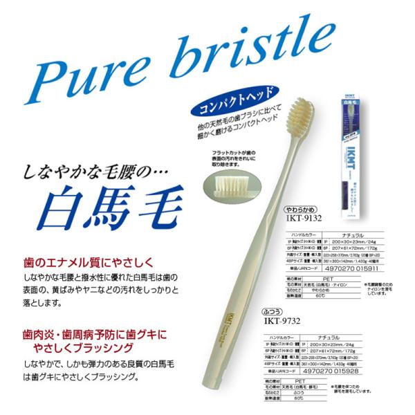 ★ポスト投函 IKT9732-6 白馬毛歯ブラシ コンパクトヘッド ふつう 6本セット 日本製/IKEMOTO/池本刷子/送料無料/代引不可