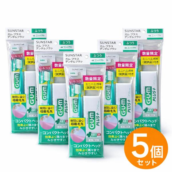 【5個セット】サンスター G・U・M ガム プラス デンタルブラシ #466 4列 コンパクト ふつう デンタルペースト 20g ハーブミント 歯ブラシ ハブラシ