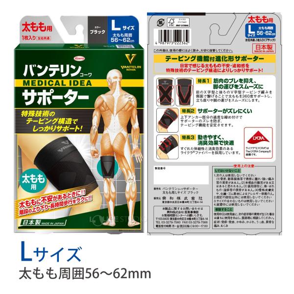 バンテリン 太もも サポーター ブラック 1枚入り 医療用 でも使われる安心の日本製 コーワ