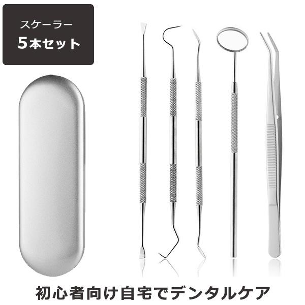 スケーラー 5点セット デンタルケア ケース付き 男女兼用 歯石取り 歯垢取り ヤニ取り 歯石 プラーク 除去 器具 自宅用 ステンレス製 先極細 デンタルツール 犬