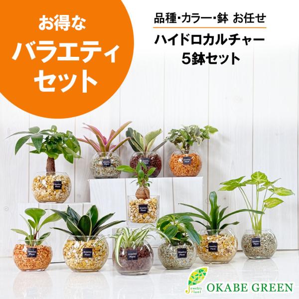 【お任せ5鉢セット】 ハイドロカルチャー 観葉植物 土なし おしゃれ ミニ パキラ ガジュマル サンスベリア テーブルヤシ ポトス アイビー シンゴニウム