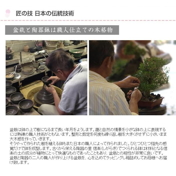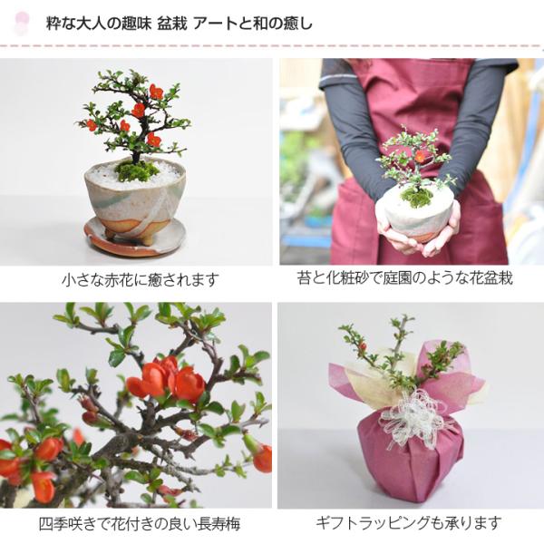 母の日 花盆栽 盆栽 長寿梅 信楽焼 白掛 受け皿付き 手作り鉢 育て方冊子 肥料付き 鉢植え プレゼント ギフト 贈り物