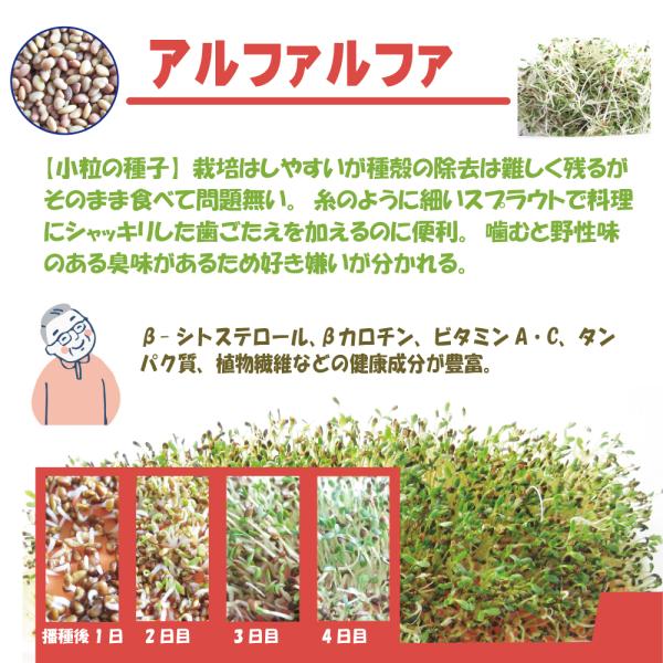 【プラントライフデザイン】アルファルファ種子 200ml 簡単栽培キット付き 高発芽率 無種子消毒 非遺伝子組換え 底面給水栽培 栽培説明書
