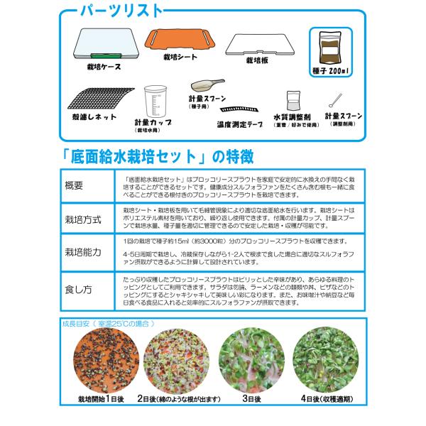 ブロッコリースプラウト種子200ml(底面給水栽培セット付き)手軽に無洗浄で大量栽培できます