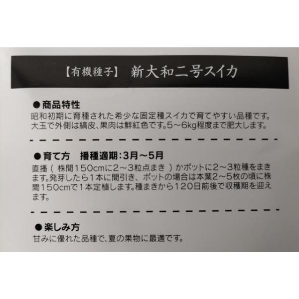 有機種子 固定種 新大和二号スイカ 種 大玉スイカ 15粒 2026年11月期限