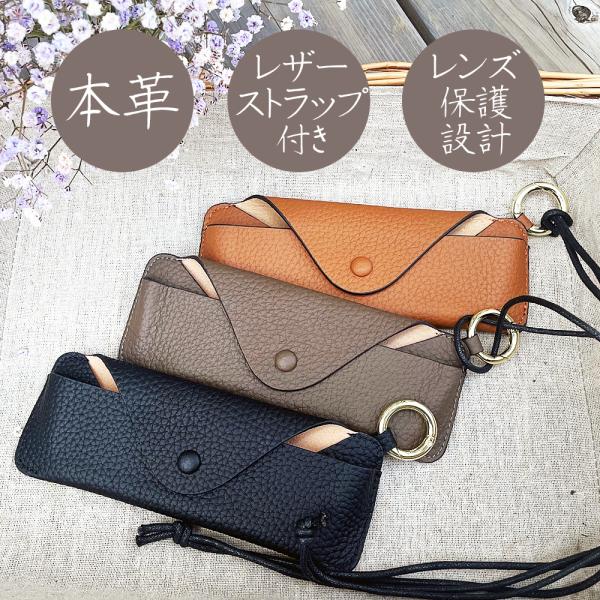 本革眼鏡ケース メガネ入れ メガネケース 革 ストラップ カラビナ 付き おしゃれ かわいい