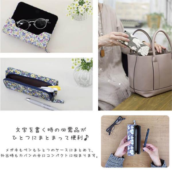 メガネケース 眼鏡ケース ペンケース 便利 ファブリック シニアグラス 花柄 コンパクト
