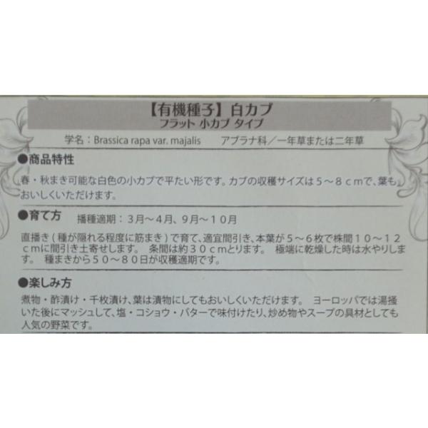 有機種子 固定種 白カブ 種 フラット 小カブ こかぶ 2g 小袋 2026年11月期限