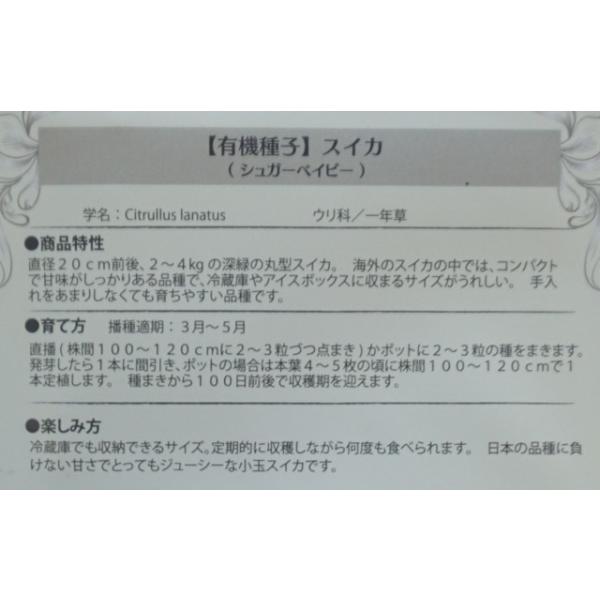 有機種子 固定種 スイカ 種 シュガーベイビー 小玉スイカ 20粒 2026年11月期限